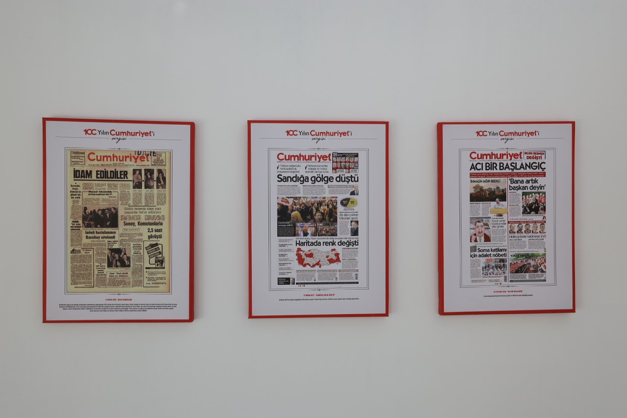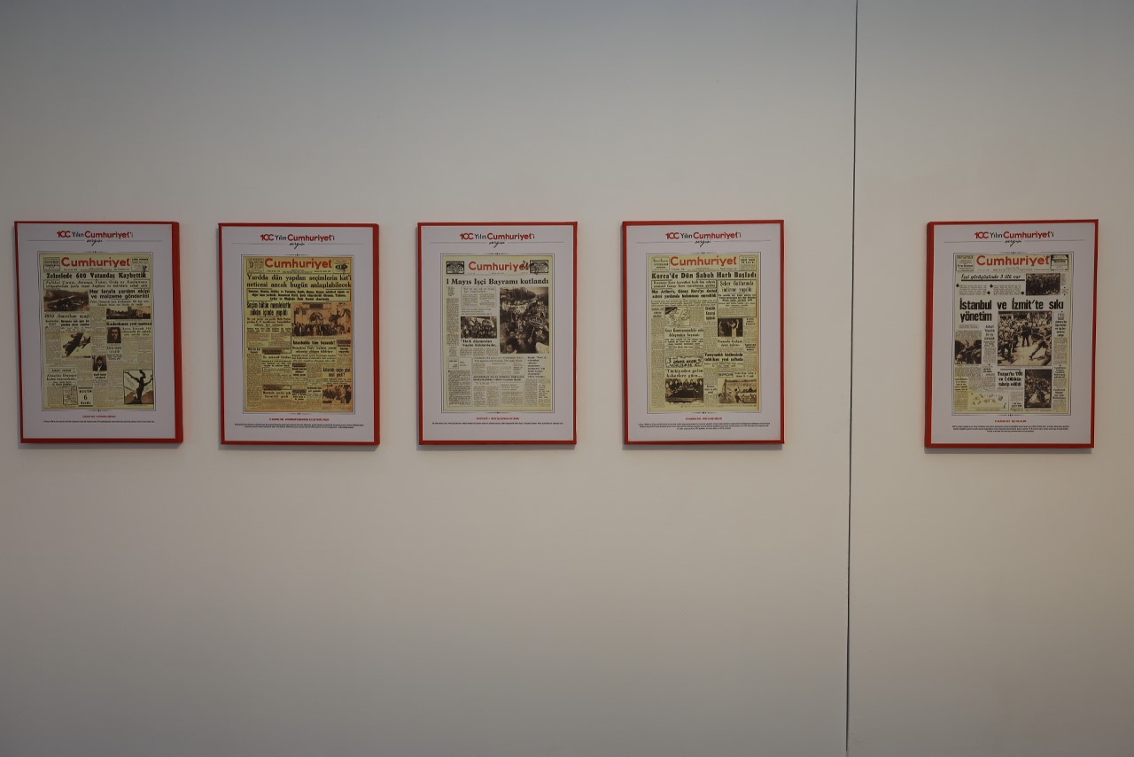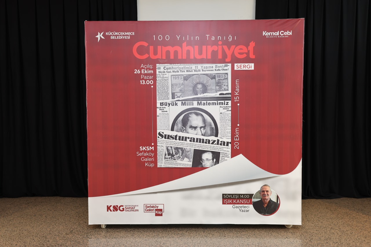 Küçükçekmece Belediyesi, Cumhuriyet gazetesinin 101. kuruluş yıl dönümüne özel olarak hazırlanan “100 Yılın Tanığı: Cumhuriyet” başlıklı sergiyi Sefaköy Galeri Küp’te izleyiciyle buluşturdu. Cumhuriyet Bayramı’na sayılı günler kala sanatseverlerle buluşturulan sergide, gazetenin her döneme damga vuran manşetleri yer alıyor.