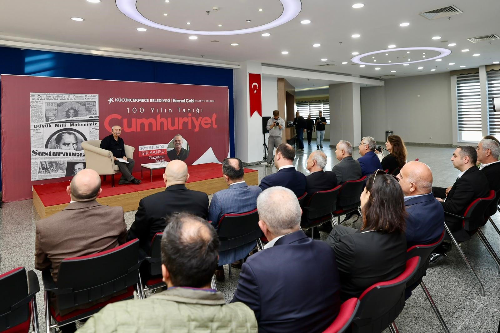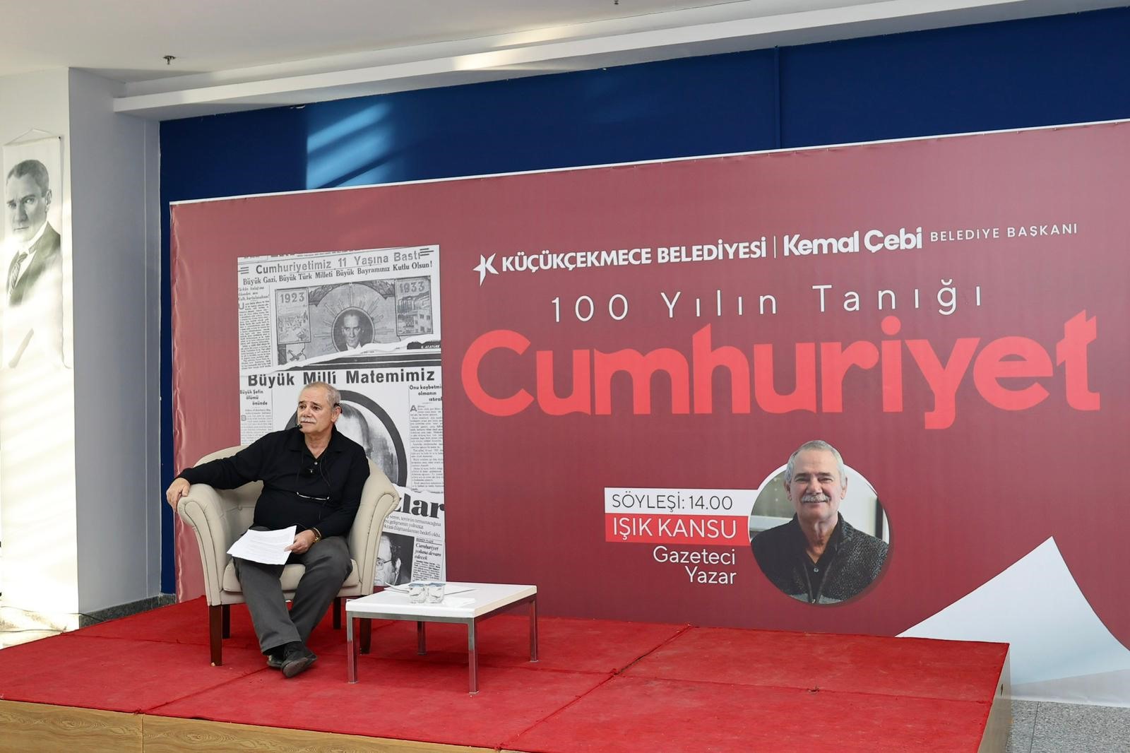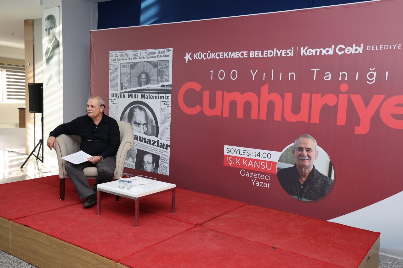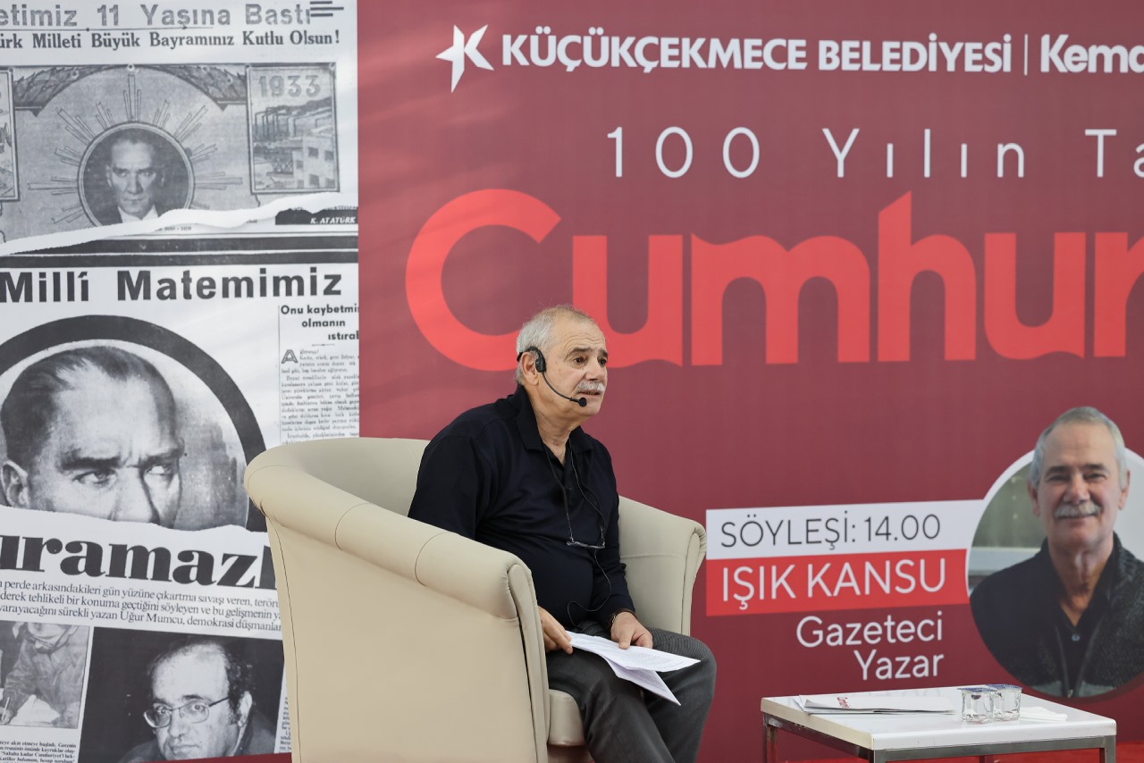Sergi açılışının ardından gazeteci yazar Işık Kansu, düzenlenen söyleşide sanatseverlerle bir araya geldi. Işık Kansu, “ Cumhuriyet gazetesinin 101 yıllık tarihinde daha ilk sayıdan anayasamız bellidir. Bizim tek savunduğumuz demokrasi ve Cumhuriyet ilkeleri olmuştur. Bu ilkeden hiç vazgeçmedik. Vazgeçmediğimiz için birçok şehitler verdik. 100 yıl boyunca kapatılmalara,cezaevleri süreçlerine rağmen kalemimizi eğmedik. Cumhuriyet yalnızca bir gazete değil, zaman içerisinde kültür, sanat ve düşünce kurumuna dönüştü. Kitap, sanat, spor ekleriyle ve Yunus Nadi ödülleriyle Türkiye'nin aydınlanma yolculuğuna katkıda bulunmaya devam ediyor” diye konuştu.