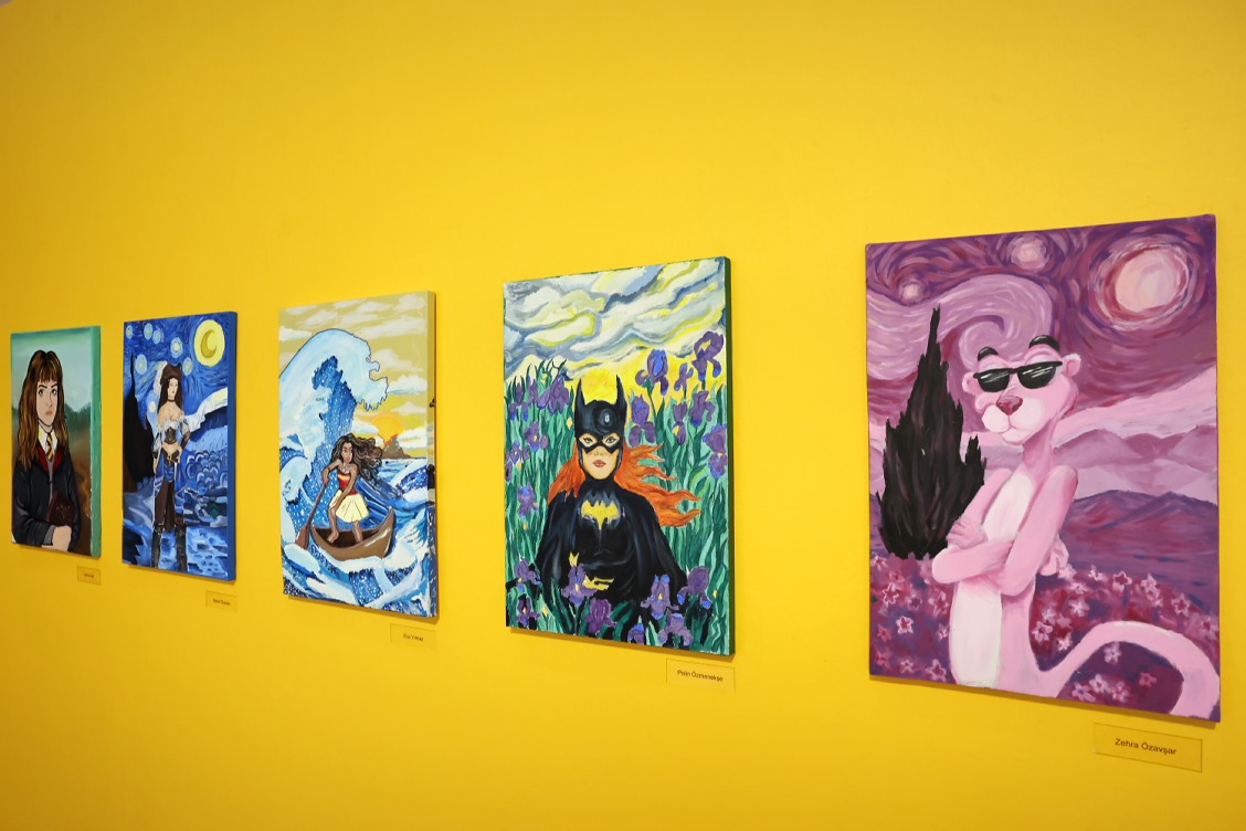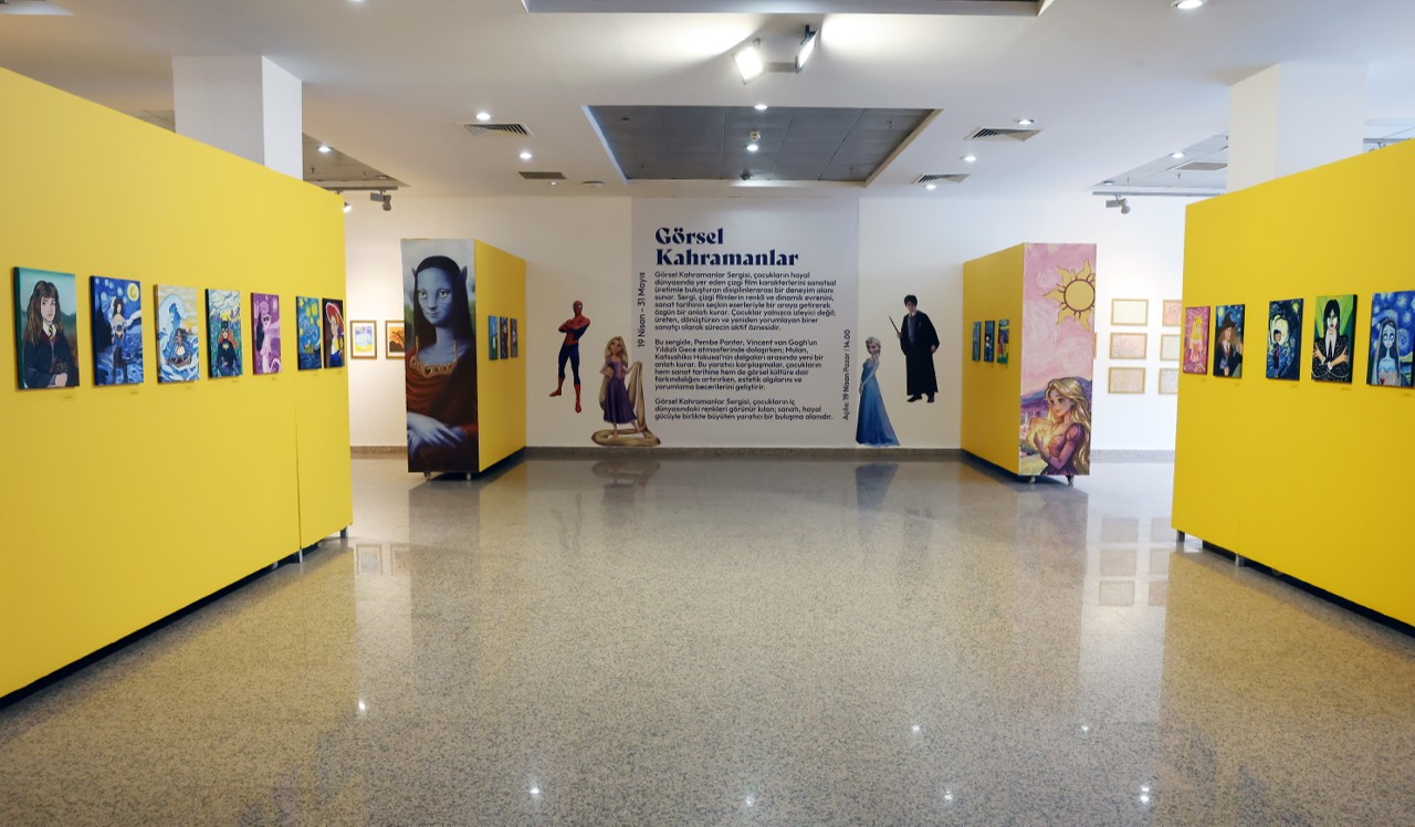 Görsel Kahramanlar Sergisi’nde eseri yer alan çocuklar, hayal dünyalarında kendilerine yakın bulduğu kahramanları çizdi. Yaratıcı çocuk branşlarında eğitim gören öğrencilerin akrilik, sulu boya, ebru, kuru boya, pastel boya ve tükenmez kalem kullanarak oluşturduğu, Pembe Panter’den Mulan’a uzanan karakterlerin yer aldığı rengarenk sergi, 31 Mayıs’a dek Sefaköy Galeri Küp’te ziyarete açık kalacak.