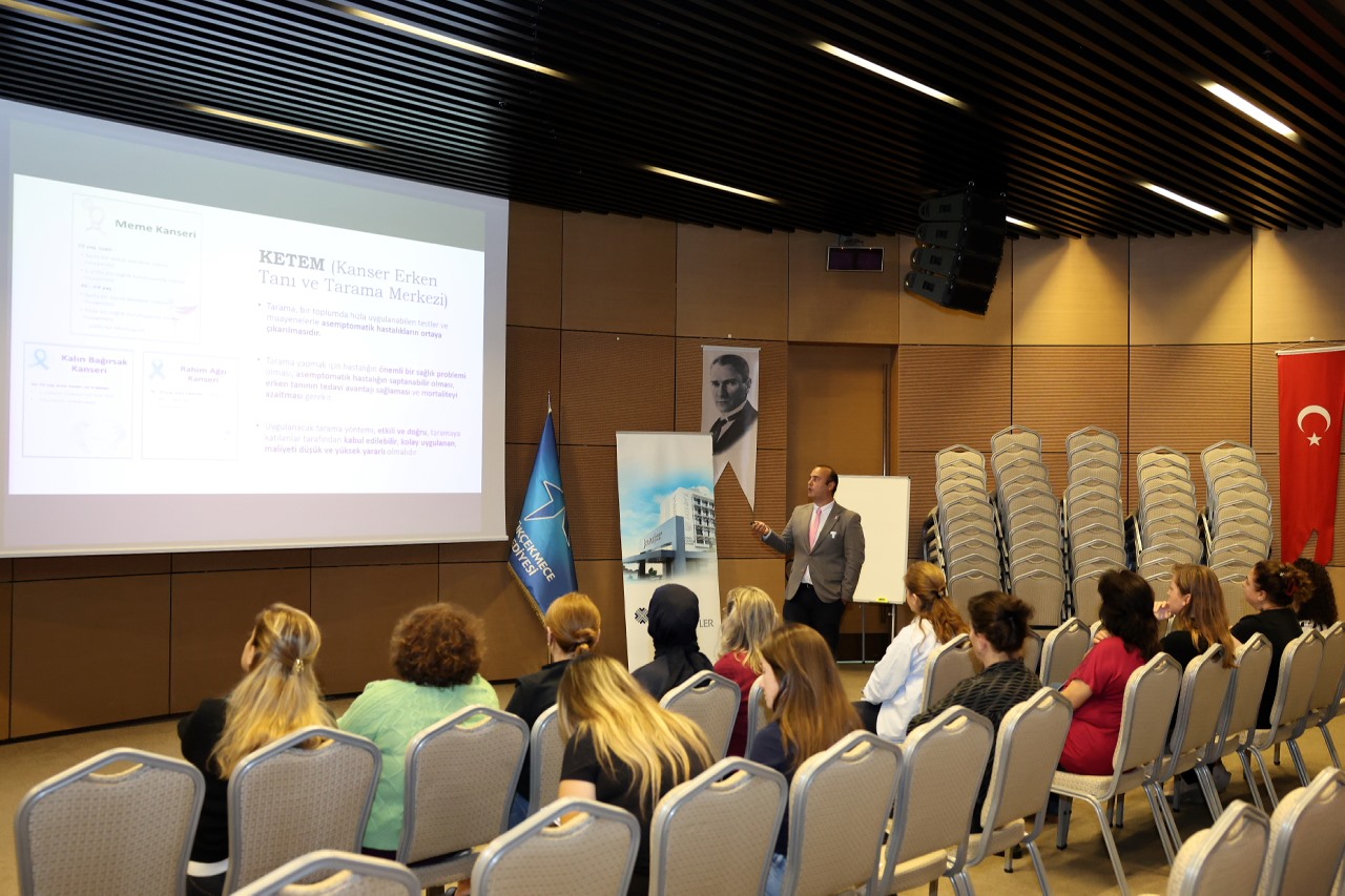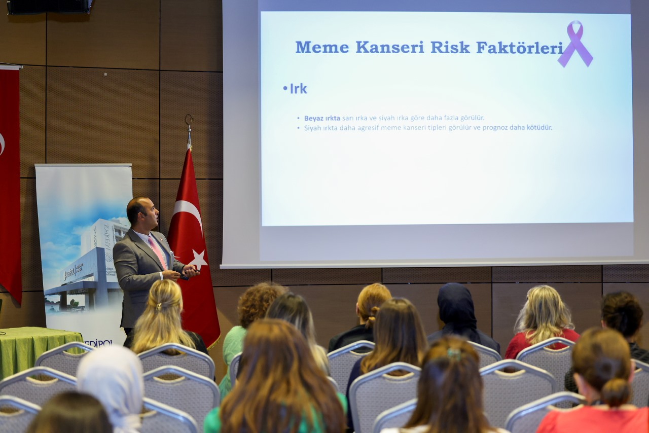 Doç. Dr. Sina Ferahman seminerde, ‘’Eskiden 20'li yaşlarda memede kitleler görünce korkmazdık ancak şuan 20'li yaşlarda kitle görünce korkuyoruz çünkü meme kanseri çıkabiliyor. Bunun nedeni genelde coğrafi köken. Türk kadınlarının meme yapısı Avrupalı kadınlardan çok farklı, memenin içindeki dokular daha yoğun. Türkiye’deki her 8,9 kadından biri meme kanserine yakalanıyor. Kimisi 30 yaşında kimisi 70 yaşında. Kanser oluşmadan veya yeni oluştuğunda tedavi sadece bir ameliyatla, kemoterapi ve ışın tedavisi almadan halledilebiliyor. Bunun için düzenli kontroller çok önemli’’ dedi.